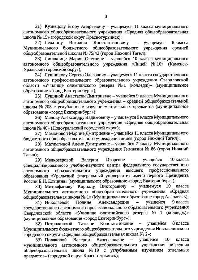 Распоряжение Губернатора Свердловской области от 30.10.2020 N 222-РГ "О присуждении премии Губернатора Свердловской области для учащихся общеобразовательных организаций, расположенных на территории Свердловской области, проявивших выдающиеся способности в интеллектуальной, спортивной, социально значимой и творческой деятельности, за 2019/2020 учебный год"