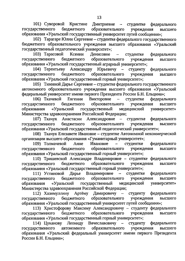 Указ Губернатора Свердловской области от 17.11.2020 N 616-УГ "О назначении стипендий Губернатора Свердловской области обучающимся по очной форме обучения по образовательным программам высшего образования - программам бакалавриата, специалитета, магистратуры, подготовки научно-педагогических кадров в аспирантуре (адъюнктуре), ординатуры, ассистентуры-стажировки, имеющим государственную аккредитацию, образовательным программам среднего профессионального образования - программам подготовки специалистов среднего звена, имеющим государственную аккредитацию, в 2020 году"