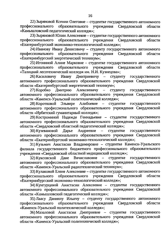 Указ Губернатора Свердловской области от 17.11.2020 N 616-УГ "О назначении стипендий Губернатора Свердловской области обучающимся по очной форме обучения по образовательным программам высшего образования - программам бакалавриата, специалитета, магистратуры, подготовки научно-педагогических кадров в аспирантуре (адъюнктуре), ординатуры, ассистентуры-стажировки, имеющим государственную аккредитацию, образовательным программам среднего профессионального образования - программам подготовки специалистов среднего звена, имеющим государственную аккредитацию, в 2020 году"
