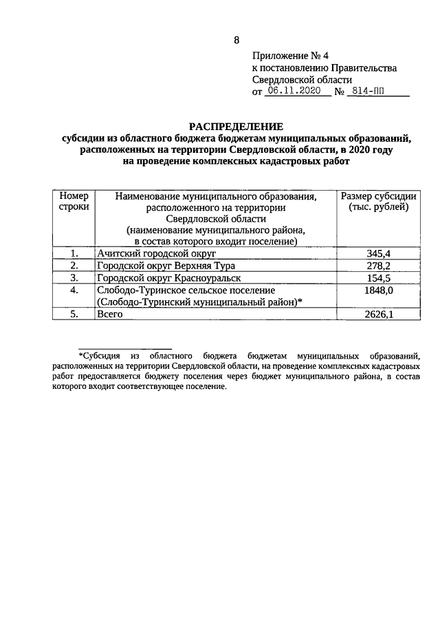 Постановление Правительства Свердловской области от 06.11.2020 N 814-ПП "О внесении изменений в постановление Правительства Свердловской области от 29.01.2020 N 46-ПП "Об утверждении распределения субсидий из областного бюджета бюджетам муниципальных образований, расположенных на территории Свердловской области, в 2020 - 2022 годах в рамках реализации государственной программы Свердловской области "Реализация основных направлений государственной политики в строительном комплексе Свердловской области до 2024 года"