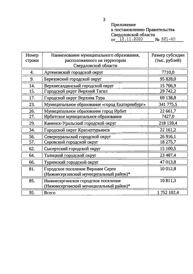 Постановление Правительства Свердловской области от 12.11.2020 N 821-ПП "О внесении изменений в распределение субсидий из областного бюджета бюджетам муниципальных образований, расположенных на территории Свердловской области, в 2020 году на формирование современной городской среды в целях реализации национального проекта "Жилье и городская среда", утвержденное постановлением Правительства Свердловской области от 16.01.2020 N 10-ПП"