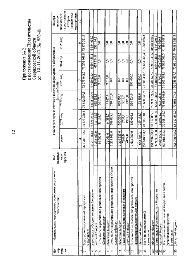 Постановление Правительства Свердловской области от 12.11.2020 N 830-ПП "О внесении изменений в государственную программу Свердловской области "Развитие системы образования и реализация молодежной политики в Свердловской области до 2025 года", утвержденную постановлением Правительства Свердловской области от 19.12.2019 N 920-ПП"
