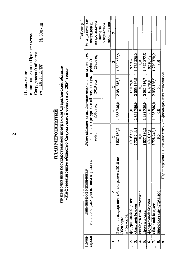 Постановление Правительства Свердловской области от 19.11.2020 N 838-ПП "О внесении изменений в государственную программу Свердловской области "Информационное общество Свердловской области до 2024 года", утвержденную постановлением Правительства Свердловской области от 29.12.2017 N 1050-ПП"