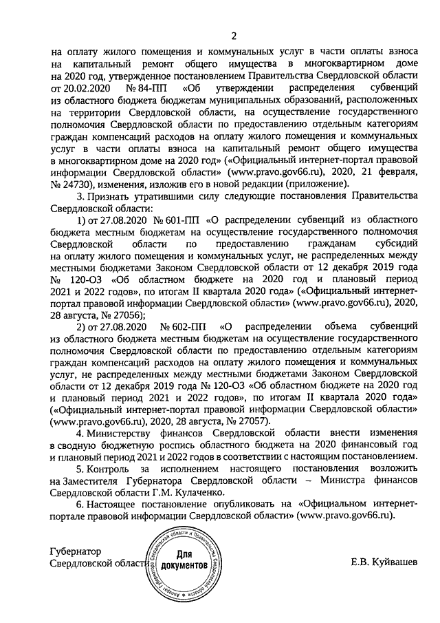 Постановление Правительства Свердловской области от 19.11.2020 N 846-ПП "Об утверждении изменений распределения бюджетных ассигнований по расходам областного бюджета и перераспределений отдельных субвенций, предоставляемых из областного бюджета местным бюджетам, и признании утратившими силу отдельных постановлений Правительства Свердловской области"