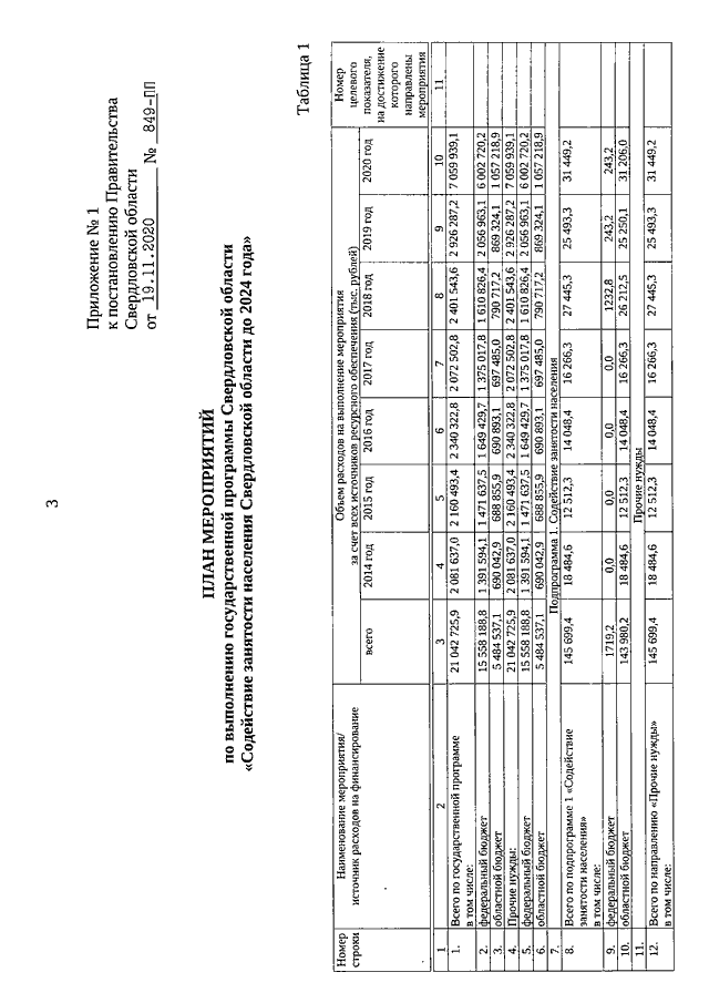 Постановление Правительства Свердловской области от 19.11.2020 N 849-ПП "О внесении изменений в государственную программу Свердловской области "Содействие занятости населения Свердловской области до 2024 года", утвержденную постановлением Правительства Свердловской области от 21.10.2013 N 1272-ПП"
