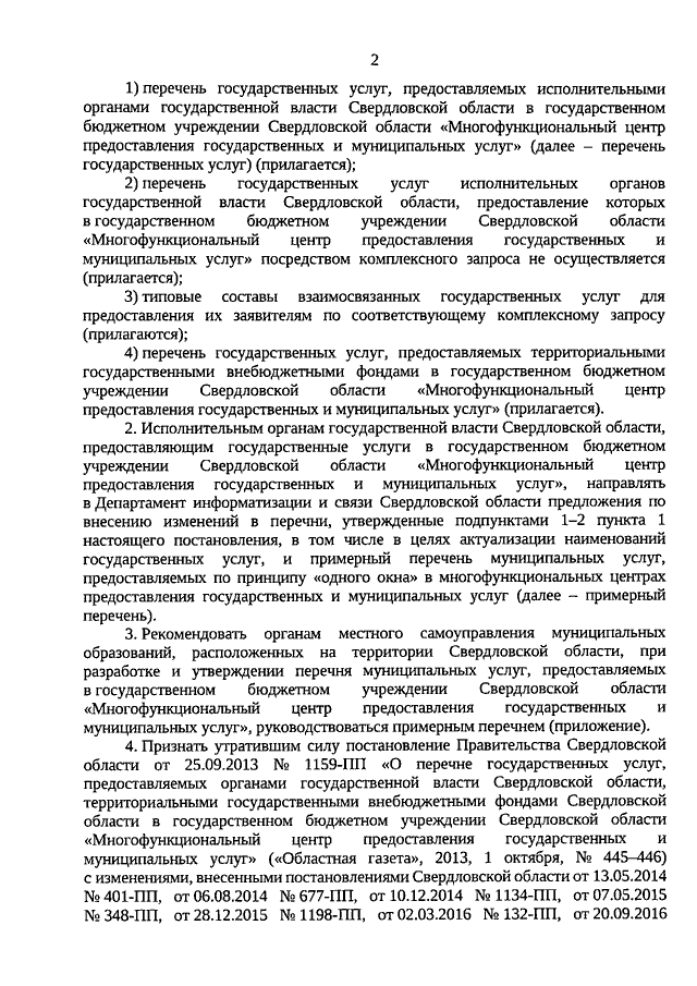 Постановление Правительства Свердловской области от 27.11.2020 N 852-ПП "О государственных услугах, предоставляемых исполнительными органами государственной власти Свердловской области, территориальными государственными внебюджетными фондами Свердловской области в государственном бюджетном учреждении Свердловской области "Многофункциональный центр предоставления государственных и муниципальных услуг", в том числе посредством комплексного запроса, примерном перечне муниципальных услуг, предоставляемых по принципу "одного окна" в многофункциональных центрах предоставления государственных и муниципальных услуг, и признании утратившим силу постановления Правительства Свердловской области от 25.09.2013 N 1159-ПП "О перечне государственных услуг, предоставляемых органами государственной власти Свердловской области, территориальными государственными внебюджетными фондами Свердловской области в государственном бюджетном учреждении Свердловской области "Многофункциональный центр предоставления государственных и муниципальных услуг"