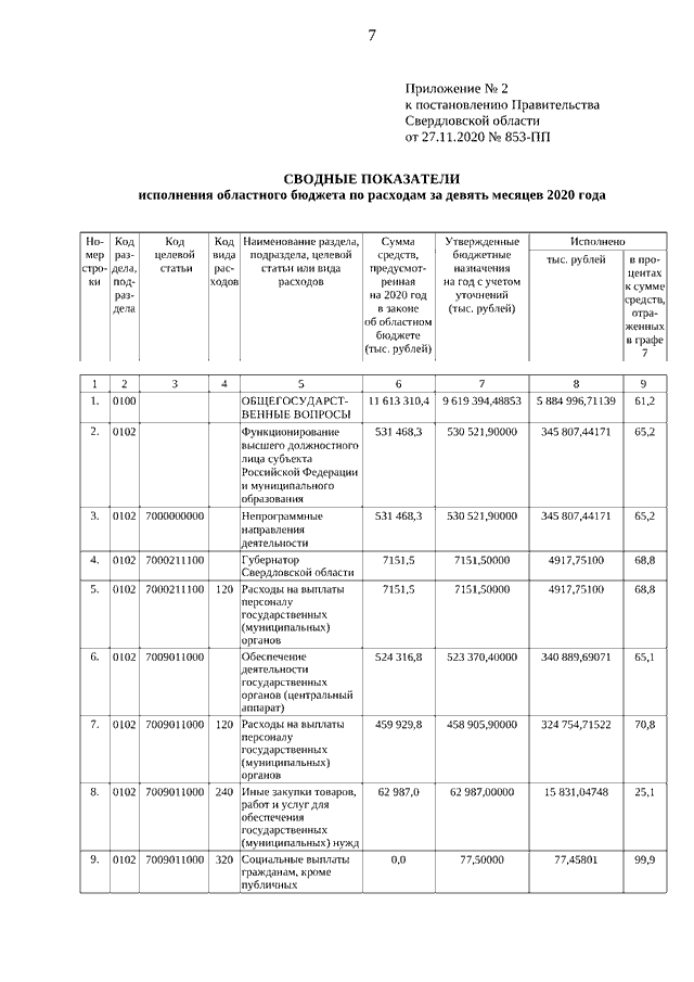 Постановление Правительства Свердловской области от 27.11.2020 N 853-ПП "Об отчете об исполнении областного бюджета за девять месяцев 2020 года"