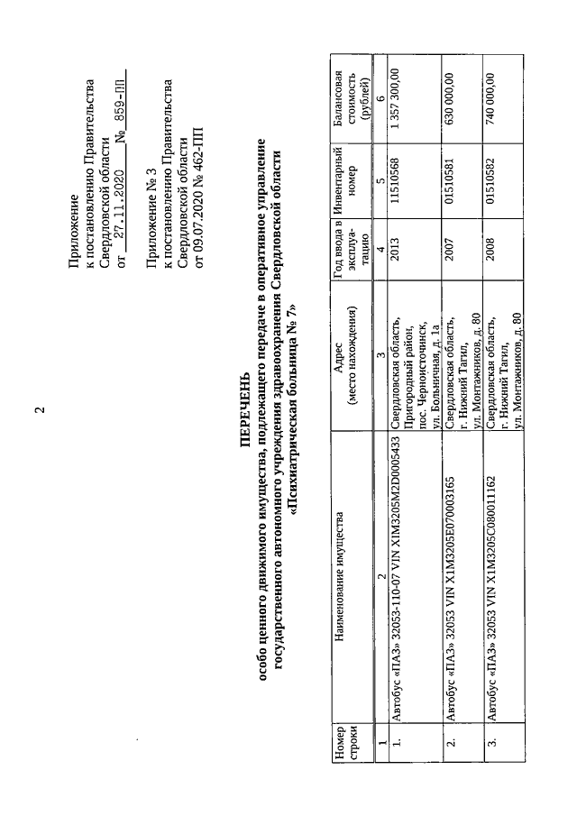 Постановление Правительства Свердловской области от 27.11.2020 N 859-ПП "О внесении изменений в постановление Правительства Свердловской области от 09.07.2020 N 462-ПП "О создании государственных автономных учреждений Свердловской области путем изменения типа существующих государственных бюджетных учреждений в сфере здравоохранения Свердловской области"