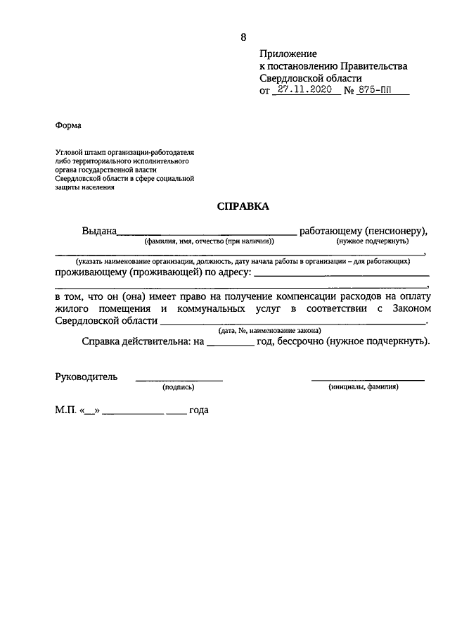 Постановление Правительства Свердловской области от 27.11.2020 N 875-ПП "О внесении изменений в отдельные постановления Правительства Свердловской области, регулирующие отношения в сфере социальной защиты населения"