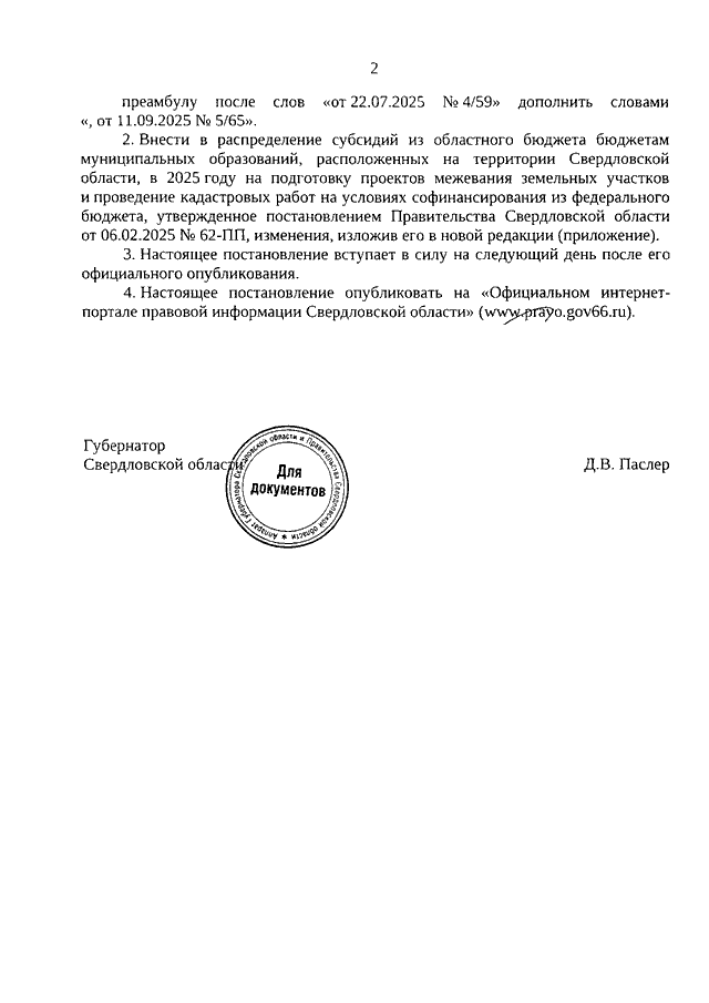 Постановление Правительства Свердловской области от 02.10.2025 N 537-ПП "О внесении изменений в Постановление Правительства Свердловской области от 06.02.2025 N 62-ПП "О распределении субсидий из областного бюджета бюджетам муниципальных образований, расположенных на территории Свердловской области, в 2025 году в рамках реализации государственной программы Свердловской области "Реализация основных направлений государственной политики в сферах агропромышленного комплекса и потребительского рынка Свердловской области"