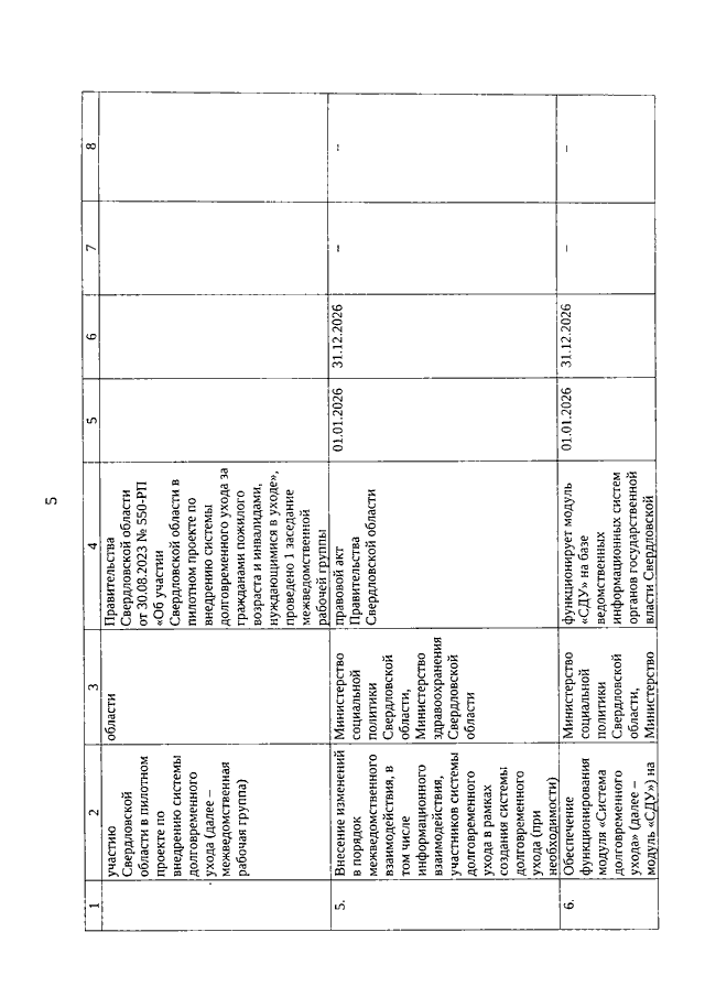 Распоряжение Правительства Свердловской области от 24.12.2025 N 623-РП "О внесении изменений в Распоряжение Правительства Свердловской области от 30.08.2023 N 550-РП "Об участии Свердловской области в пилотном проекте по внедрению системы долговременного ухода за гражданами пожилого возраста и инвалидами, нуждающимися в уходе"