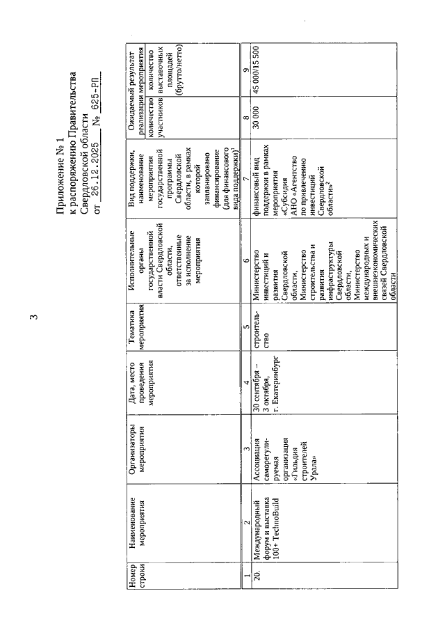 Распоряжение Правительства Свердловской области от 26.12.2025 N 625-РП "О внесении изменений в Перечень выставочно-ярмарочных и конгрессных мероприятий, проводимых при участии и поддержке Правительства Свердловской области, на 2025 год, утвержденный Распоряжением Правительства Свердловской области от 27.02.2025 N 81-РП"