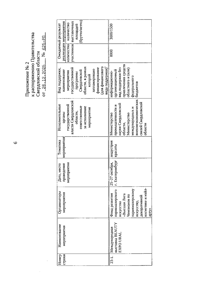 Распоряжение Правительства Свердловской области от 26.12.2025 N 625-РП "О внесении изменений в Перечень выставочно-ярмарочных и конгрессных мероприятий, проводимых при участии и поддержке Правительства Свердловской области, на 2025 год, утвержденный Распоряжением Правительства Свердловской области от 27.02.2025 N 81-РП"